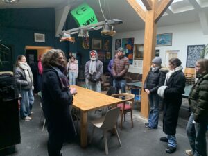 Vom 8. bis 10. Januar war der Erdkunde-Kurs des 13. Jahrgangs zum Thema Stadtentwicklung in Hamburg unterwegs. Im Fokus standen die Themen des letzten Semesters, in dem es um die klimaresiliente und nachhaltige Stadt geht. Am Donnerstag stand das Thema Gentrifizierung im Mittelpunkt. Christiane Hollander hatte uns in die Johann-Daniel-Lawaetz-Stiftung nach Altona zu einem Vortrag eingeladen. Frau Hollander ist seit Jahrzehnten politisch in Hamburg aktiv. Als Juristin war sie 30 Jahre für den Verein Mieter helfen Mieter in Hamburg aktiv und hat die Gentrifizierung des Viertels hautnah miterlebt. Zum Vortrag war auch Janine Hey geladen, die als Sprecherin des alternativen Wohn-, Arbeits- und Kreativprojektes Viva la Bernie gegen die Verdrängung dieses außergewöhnlichen Projektes im Schanzenviertel kämpft. Am Freitag haben wir uns dann das Projekt angesehen und sind im Anschluss zu Fuß in die Speicherstadt gegangen, da der ÖPNV wegen des Schnees eingestellt war. Die dortige Führung zum Thema Hochwasserschutz musste dann wegen des Wetters abgebrochen werden. Der geplante Besuch des Grünen Bunkers war wegen den Witterungsverhältnissen nicht möglich. Nach einem kurzen Aufwärmen im Hostel, konnte dann noch das zugeschneite Schanzenviertel in Kleingruppen erkundet werden. Am nächsten Morgen ging es mit dem Zug zurück nach Oldenburg.